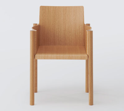 当時から培ってきた技術やものづくりの基本は今に受け継がれ、建築家やデザイナーの要求に応え、再現するノウハウは国内トップだと自負しています。難しい仕事ほど、知恵を出し合って形にしようという職人の矜持も高く、KOYORIの製品「Kawara」でいうと、アームのなめらかな曲板が、まさに薄いシート状の木材を重ねて曲げながら接着し形づくる成形合板だからこそ実現できた部分です。